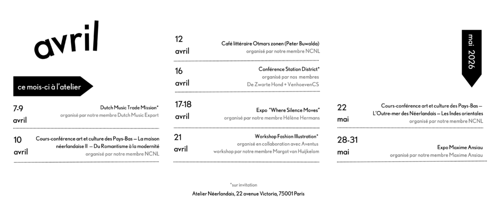 Pendant la semaine de la Mode de Paris (25/09 tot 2/10) , il y aura plusieurs expositions à l’Atelier Néerlandais….